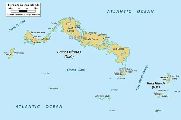 Turks and Caicos Islands(特克斯和凯科斯群岛),由40个低洼珊瑚岛组成,位于中美洲巴哈马群岛东南,是英国的海外领地。