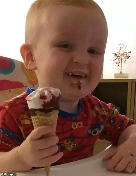 英国肯特郡一名2岁男童突然长出了2颗尖牙,酷似吸血鬼,吓坏了妈妈。妈妈称,就在不久前,儿子Oakley在一周时间内长出了尖牙。她带他去看了牙医,医生说,Oakley的牙都很健康,他也并非唯一一个长出怪牙的人,坚硬的食物会在日后把尖牙磨平。儿子没有任何痛苦,也没有语言障碍,这才是最重要的。放下心来的妈妈为避免孩子自卑,专门给他取了外号—“小吸血鬼”。“无论如何,我叫在别人的前面对儿子的心理会有些帮助,总会有人这样叫的。当他们盯着他说,看看他的小尖牙齿……那时我就会对他们说,没错,这是我们的小吸血鬼。”“万圣节马上要来了,Oakley最喜欢蜘蛛侠,我们才不会因为他牙尖就强迫他去扮吸血鬼。”这位乐观的妈妈笑道:“当然,他根本不需要去买那副牙,黑布一蒙,比谁都像。”