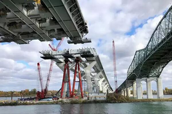 耗资数十亿、连接蒙特利尔岛至南岸的新Champlain大桥已将原定于12月21日的交工期推到了最迟明年6月前。而造成此延迟的原因有很多:如魁省当初提供给大桥承建方SSL的现有魁省桥梁承载吨数有误,致使很多建桥装备无法运达施工现场,最终只好现搭一座专门用于运输的临时桥、从西班牙运来的整箱螺栓螺帽与箱型梁均有质量缺陷,必须于现场予以修复等人为因素;也有闪电击中起重机须停工三天,起重机操作员大罢工等不可抗力。联邦基础设施部长François-Philippe Champagne就此表示,政府将尊重合同:若延期,首周一天罚10万,之后每天罚40万,最高1亿5封顶。部长同时表示:于1957年开通的Champlain旧桥最终将被拆除。今年该桥的维护费用为5千万元,此外还需另付1千万用以确保安全性,直至新桥开通。