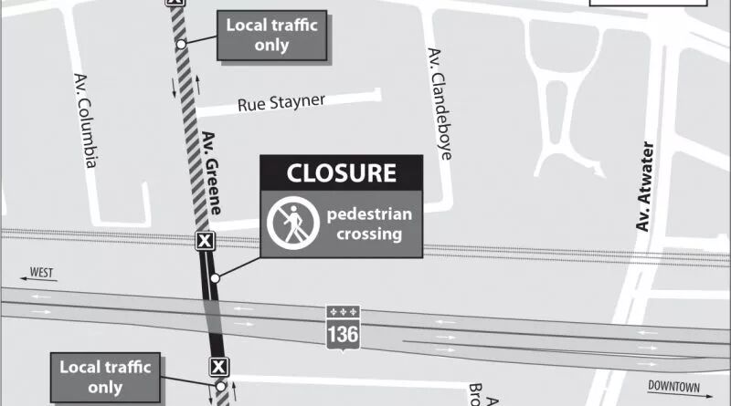 人行道关闭至年底 2018年12月31日 截止 因桥上施工,Greene avenue人行道关闭。