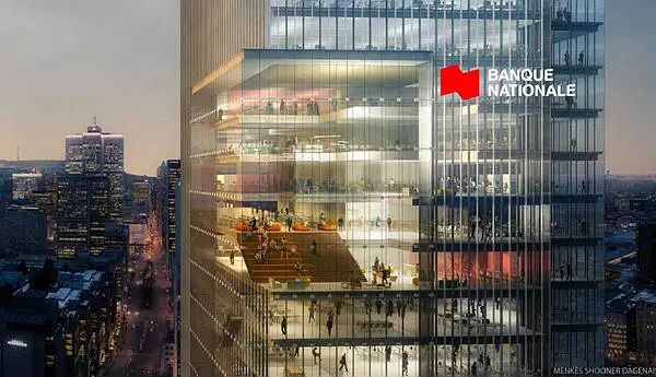本周三,国家银行(National Bank)为其在蒙特利尔的新总部大楼举行了奠基仪式,超过1千名员工参加了典礼。据悉,此项目耗资巨大,超过5个亿,国家银行欲以此彰显其成立近160年的里程碑意义,这也成为蒙特利尔过去25年来最大的房地产投资及建设项目。国家银行新总部大楼高40层,约190米,建成后将成为蒙特利尔第二高楼。大楼位于800 rue Saint-Jacques Ouest,楼内将与蒙特利尔地下城相连。宽敞明亮的入口大厅,一个国家银行商务中心,一个会议中心,一个两层自助餐厅,一个日托中心,一个健身房,400个自行车停车位,80个电动汽车充电站和一个室外花园。工期预计四年,2022年年底完工。