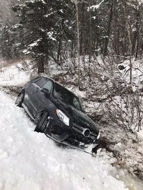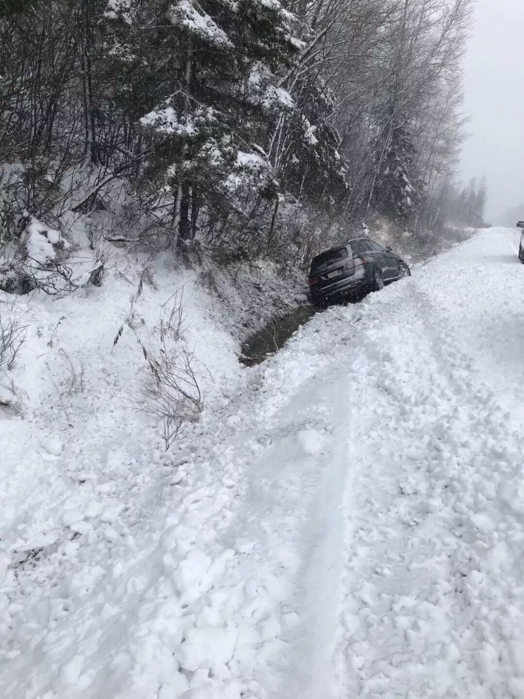 车行自知理亏,我们加了一些钱,换了一辆顶配的SUV汽油和电混合动力的车。可是,今天是新车雪天的首秀,就失控跑进沟里了。