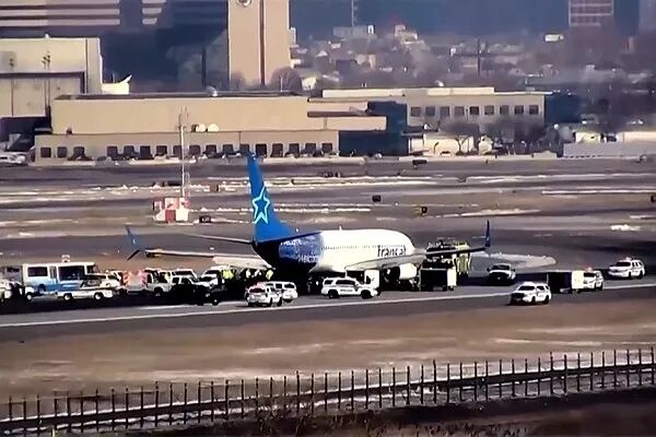 周六早上,一架载有189名乘客、从蒙特利尔起飞的Air Transat航班在美国新泽西州机场紧急降落。Air Transat发言人Debbie Cabana第一时间发表声明称:因货仓突发烟雾警报,前往佛罗里达州的Air Transat 942号航班在途中被迫降落在新泽西州的纽瓦克。美国联邦航空管理局推特发文:飞机降落时机场消防队员已于跑道上待命,乘客用滑梯撤离。加拿大方面称“事件中无人受伤”。但纽约和新泽西州港务局则表示“有两名乘客报告轻伤,其中一人被送往医院接受检查”。
