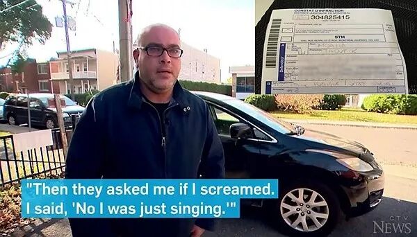 2017年9月初,蒙特利尔男子Taoufik Moalla于开车归家途中被警察拦下。四名警察呈包围之势上前问他“发生了什么事情”。他蒙了,“啥也没发生呀……”一警察质问到:那你刚你喊个啥?Moalla说:我在听我最喜欢的一首歌,我边听边唱……警察逐以“在公共场所尖叫”为由开给他一张149元的罚单。据蒙村法律,“打破安宁与和平,导致混乱的尖叫”将被处以50-1000元罚款。Moalla不服上诉。一法官近日裁定Moalla无罪,罚单无效。Moalla表示,“虽然我胜诉了,但我以后会多加注意,不再开车唱歌……因为我老婆不爱听,现在都是孩子们在唱……”他的愉悦溢于言表。