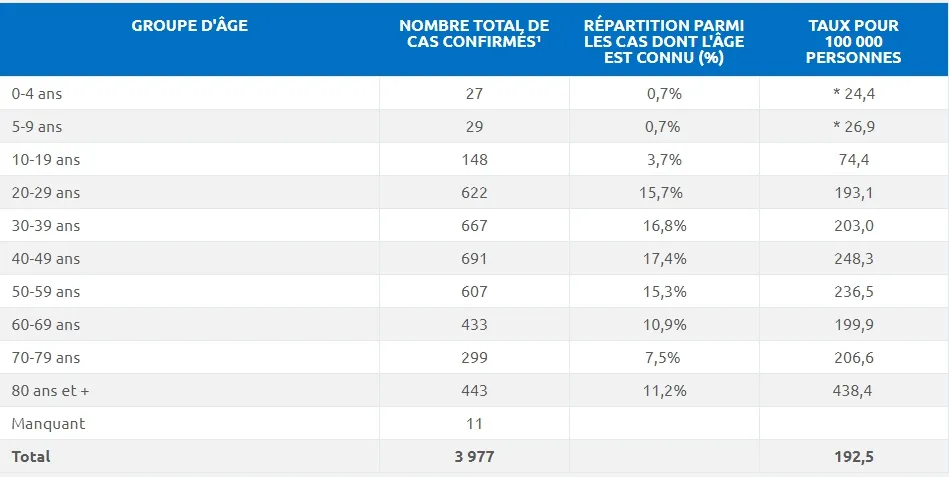 蒙特利尔岛内累计确诊3,977宗(新增264例)。