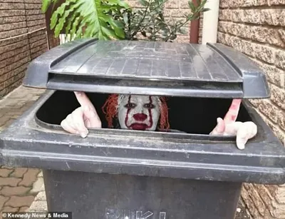 Ruan漫不经心地提着垃圾走到垃圾箱前,掀起盖子,突然发现里面居然坐着一个人!杀人小丑潘尼怀斯!