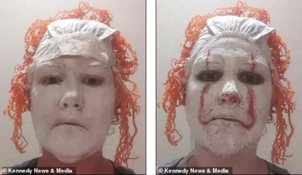 皮老妈煞费苦心找来假发、白布单,尽力将自己打造成儿子最怕的模样。