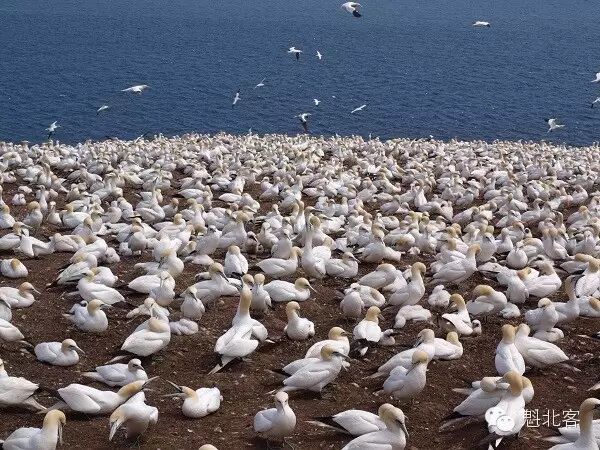 码头上买票,乘船绕过怪石,前往离岸边3.5公里外、孤立在大海中的鸟岛(Ile Bonavetue),这个岛1971年以前是有人居住的,后来为了给鸟腾地方,政府将35户居民强迁出岛。鸟岛每年有近30万只唐鹅栖息,5-10月份开放,游客只能乘船登岛,岛上的鸟也不怕人,大概知道有政府给他们撑腰。