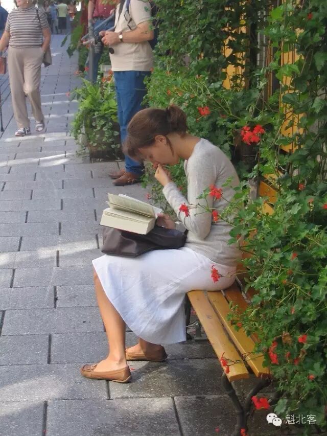 算一下,上面照片是老编十年前抓拍的,当时就有个问题,为什么在美丽的地方低头看手机会煞风景,而低头看书则会显得可爱一点儿呢?