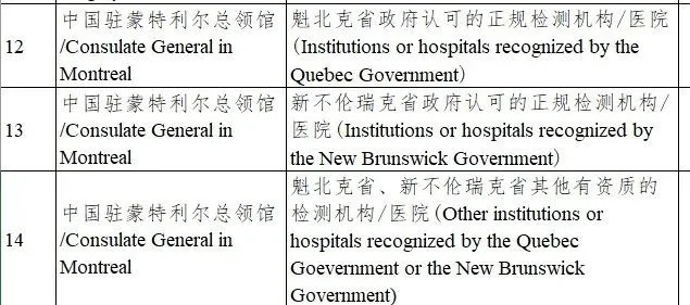 赴上述国家中转的所有旅客,应于中转登机前5天内完成核酸检测。中国驻加拿大使领馆指定或认可的检测机构名单详见各使领馆网站。