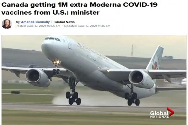 昨晚,加拿大收到了美国发来的100万剂Moderna疫苗,这并不在加拿大自己的采购计划之中,而是美国政府赠予的。