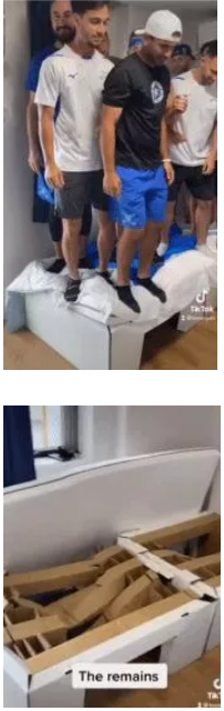 此前奥运村总经理北岛隆当时还宣称,纸板床能承受 200 公斤的重量,甚至比木床还要结实,“不会被世界上身体最好的一群年轻人睡塌”。