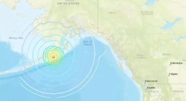 美国地质调查局已将地震震级定为8.2级——其发生在海平面以下约46公里处,震中位于阿拉斯加州佩里维尔(Perryville)东南偏东91公里处,距阿拉斯加最大城市安克雷奇(Anchorage)约800公里。