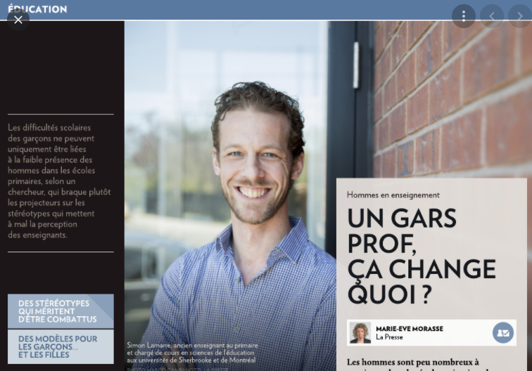 去年6月他还曾因为关于学校内男教师的重要性的研究而被La Presse采访,采访视频现在还在Youtube上。La Presse称采访时并不清楚针对Simon的指控。