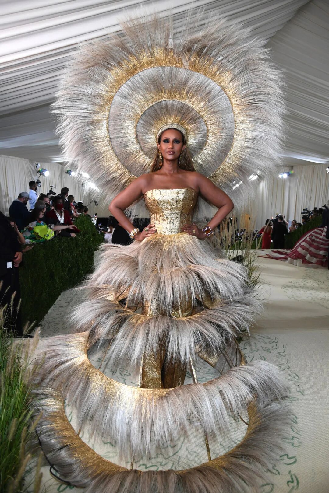 身着Harris Reed的礼服的Iman,这到底是是喷泉附体还是附体了喷泉呢?