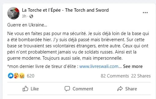 不要担心我的安全。我已经离昨天被炸的基地很远了。我以前去过那里,但很短暂。这个基地中有外国志愿者,那些死去的人可能从未见过俄罗斯士兵。这就是现代战争。仍然一样肮脏,没有人情味。*我最新的狙击手书:www.livreswali.com……