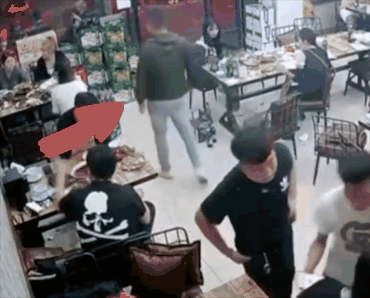 黑衣女生的两个朋友赶紧挺身相护,但遭到黑衣男子砸凳子,脚踹…