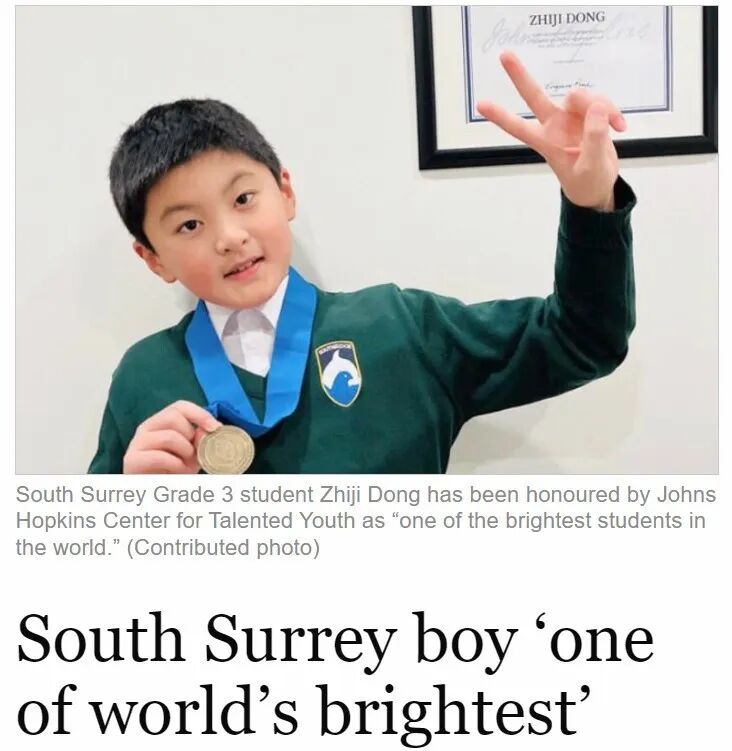 据报道,美国名校约翰霍普金斯下设的青年天才中心(CTY)本月表彰了华人董智骥,因为他在有着“美国高考”之称的SAT、ACT等能力测试中表现出色。