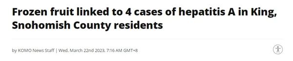 据报,美国金县和西雅图卫生局警告居民,正在召回的“冷冻有机草莓和热带水果混合物”已导致华盛顿州西部至少5人患上甲型肝炎。