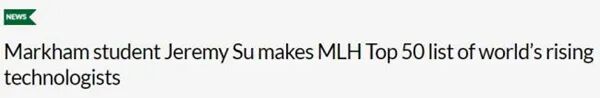 加拿大多伦多万锦市Unionville高中学生Jeremy Su近日入选“美国黑客大联盟2023年50强”榜单(MLH 2023 Top 50)。