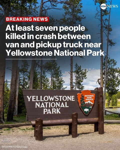 爱达荷州警方2日表示,该起事故发生在20号高速公路、黄石国家公园西门外约25.75公里处(亨利湖州立公园附近)。