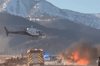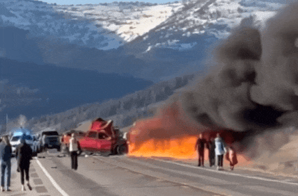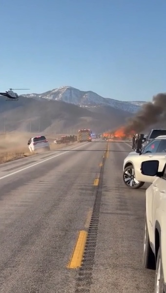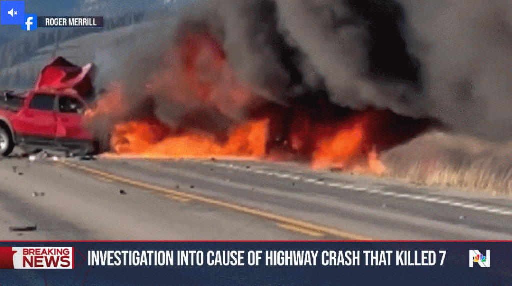 目击者Roger Merrill描述称:“整条公路仿佛被火舌吞噬。火势非常凶猛,黑烟滚滚,车辆残骸散落一地。我看到两名路人冒险从燃烧的奔驰车中救出8人,包括1名儿童。”