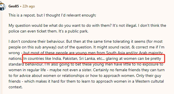 值得注意的是,关于此事的讨论已不仅局限于行为本身,部分网友也开始将目光投向了背后的文化差异。这位网友刻意强调“并非试图种族化地看待问题”,但这类现象似乎在一些国家被视为是正常行为。
