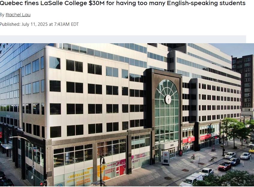 LaSalle College因在过去两年招收了过多的英语学生而被Legault领导的CAQ政府开出了$3000万的天价罚单。今早,LaSalle学院证实了这一消息,称其被指控违反了《法语宪章》(Bill 101)及其修订版《第96号法案》