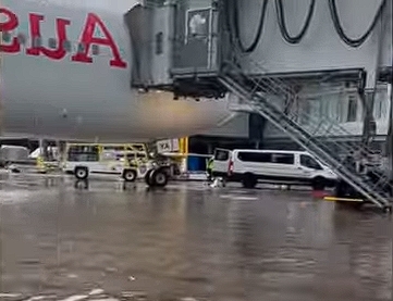 与此同时,蒙特利尔特鲁多国际机场也受到暴雨和积水影响,多个航班被迫延误或调整起降时间。