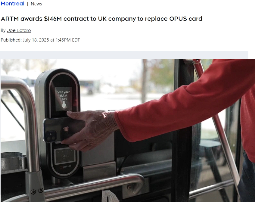 刚刚,蒙特利尔大都会交通局(ARTM)宣布,已正式将价值1.46亿加元的公共交通票务系统升级合约,授予总部位于伦敦的英国公司Masabi。