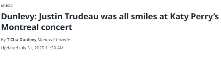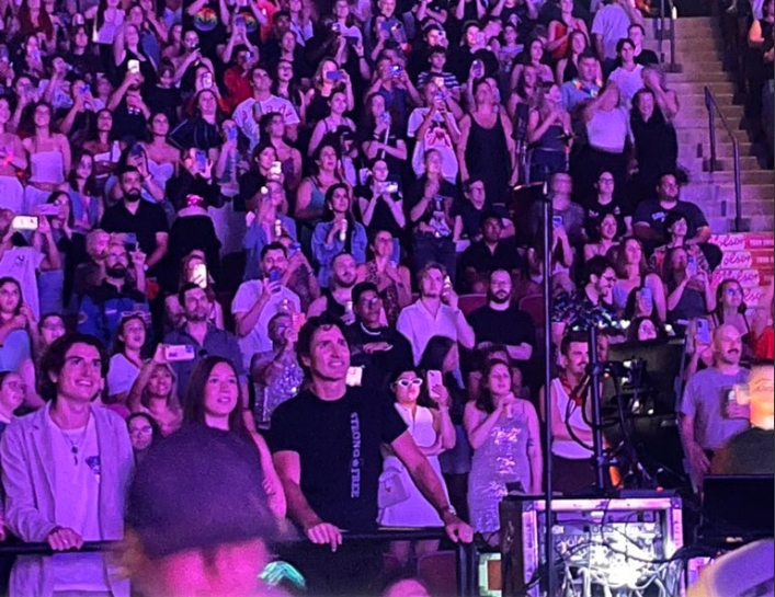 当晚,特鲁多身穿黑色“Strong & Free”T恤,与女儿Ella-Grace坐在靠近舞台的特别看台区,随着音乐敲击扶手,摇晃身体,被多家西媒形容为“全程笑容灿烂”。