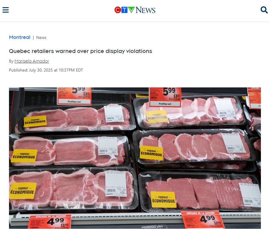 自今年5月起,魁省关于杂货店价格展示和小费的新规定正式生效。然而,省消费者保护办公室(Office de la protection du consommateur)近日表示,部分超市和零售商未能遵守关键条款,已向多家大型连锁发出正式警告信。