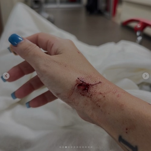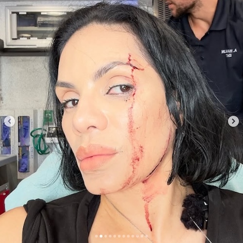 “就在我咬下一块美味的三文鱼迷你汉堡的时候,一辆皮卡车撞了过来……”桑蒂亚哥女士在社交媒体上发文并分享了她的伤势照片,“我很感激我还活着……”