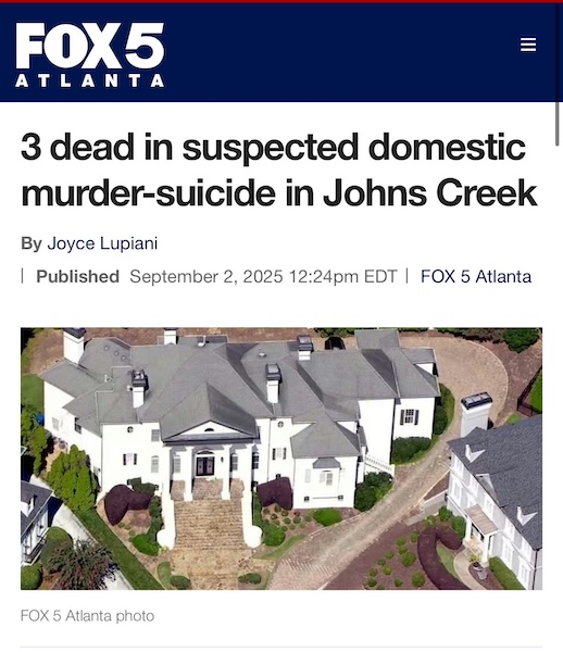 美国乔治亚州Johns Creek小镇发生了一起家庭惨案。