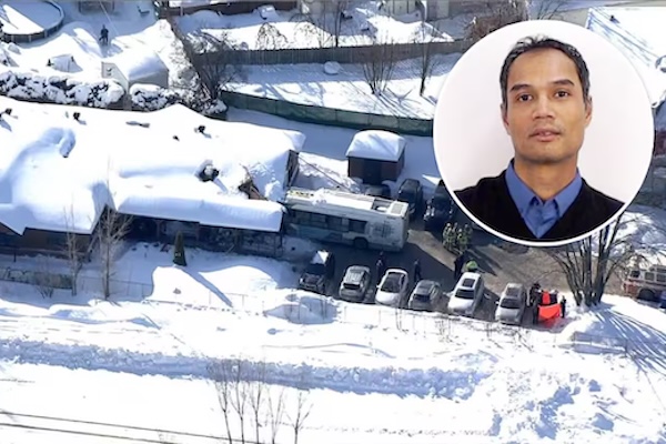 2023年2月8日,现年53岁的公交车司机皮埃尔·尼·圣阿芒(Pierre Ny St-Amand ↓)突然精神错乱,驾驶公交车撞入位于拉瓦尔的圣罗莎幼儿园,惨剧造成2名儿童死亡,6名儿童受伤。