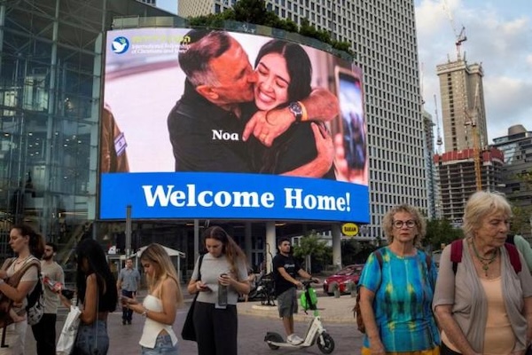 2024年6月诺亚获得自由后,特拉维夫的大萤幕上反复播放其与家人激动拥抱的画面