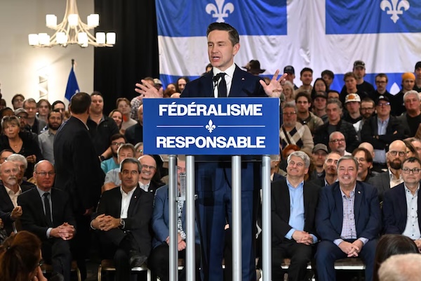 11月6日,保守党领袖波利耶夫在魁北克工商会演讲时表示,他理解许多魁北克年轻人对渥太华缺乏归属感。他强调:“我们要为国家历史感到自豪,并认识到魁北克民族主义是加拿大爱国主义的一部分。”