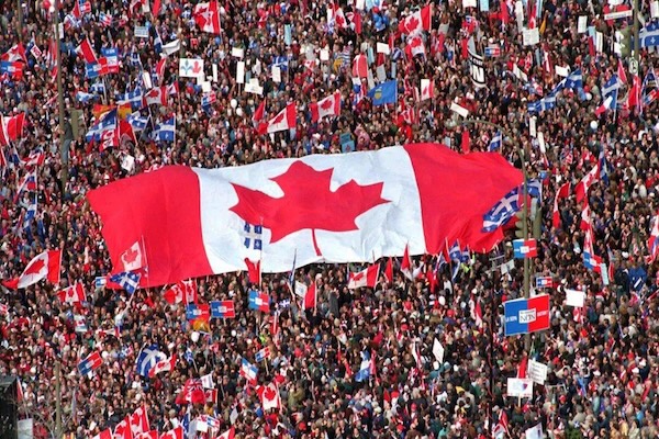 1995年10月27日,在魁北克公投前几天,成千上万加拿大人涌向蒙特利尔,举行盛大的“love-in/爱之集会”,表达对魁北克的爱,鼓励其留在联邦。