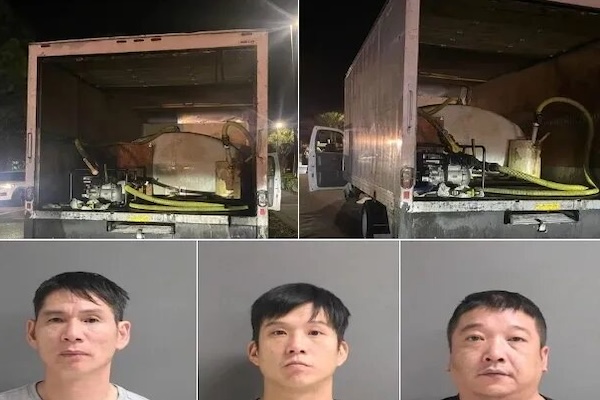 警方称,三人驾驶一辆大型卡车作案,车内装有大型油桶和专业抽油泵,专门在夜间前往餐馆后方,从储油罐中非法抽取地沟油。地沟油回收公司安全人员巡查时发现异常并报警。