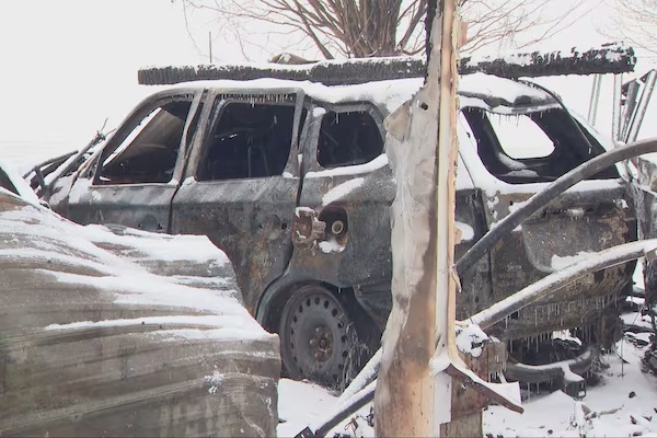 大火被扑灭后,房屋状况为“完全损毁”。大火也殃及了住宅门前停放的两辆汽车,一辆被完全烧毁,另一辆状况不明。