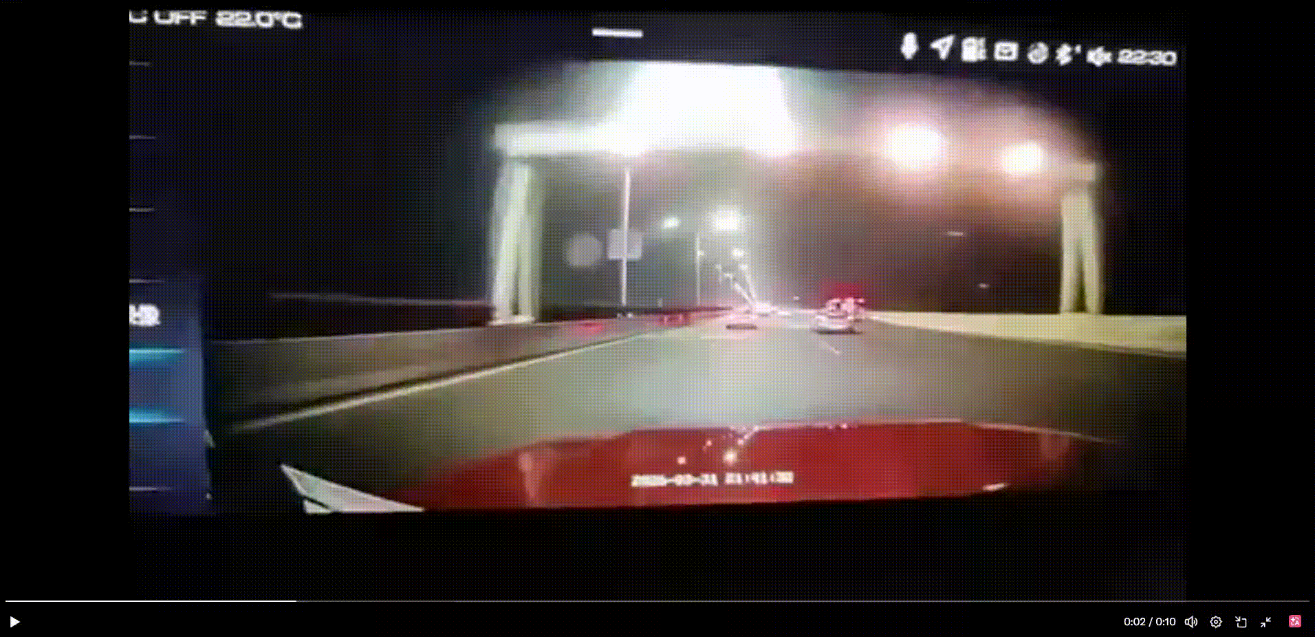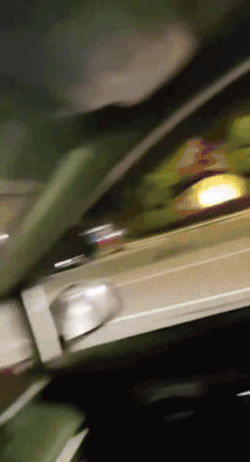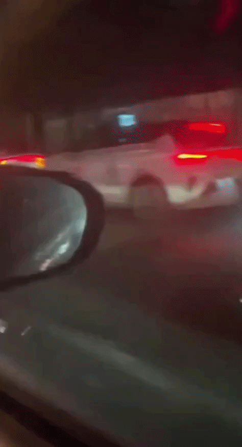 ↑追尾瞬间:一辆白色的“萝卜快跑”出租车停在路中间,驾驶红车的司机发现不及,发生追尾事故。