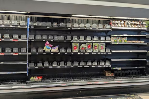 据CBC报道,长周末第一天,许多魁北克居民一进超市就吓了一大跳:货架上的水果、蔬菜稀稀拉拉……有顾客不得不跑了三四家店才买到西兰花、蜜瓜等常见品类。