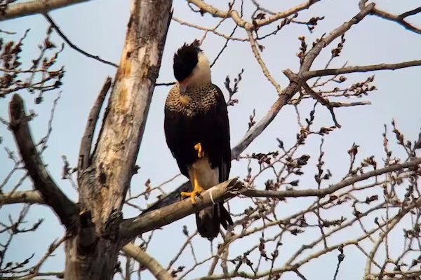 Caracara huppé(Crested Caracara),隼形目隼科(Falconidae),中文译为“凤头巨隼”。作为一种中大型猛禽,静态时,它的体型与一只大乌鸦或小型鹰相差不大,若展翅,它的翼展更宽、气势更强。