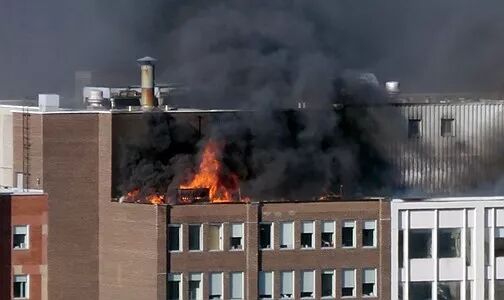 蒙特利尔市中心Ste-Catherine和Berri街角处的一幢办公大楼昨日起火。此楼是法语报纸Le Devoir的办公室所在地。火势异常凶猛,建筑物顶部可看到巨大的黑烟。Le Devoir主编Brian Myles在火灾发生后不久于网上发布消息说,工作人员已因火灾全部撤离,所有员工都安然无恙,不过,大楼的损坏程度目前尚不清楚。