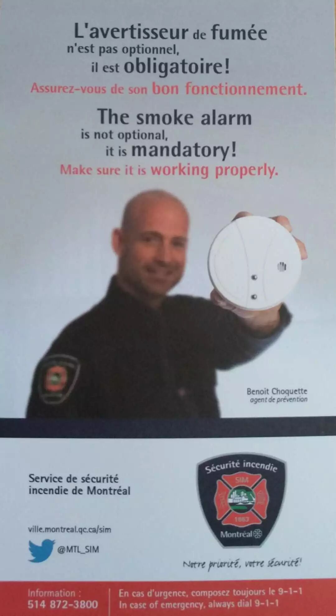 刚刚,警方人员挨家挨户分发了烟雾报警器宣传单,以强调各家必须安装烟雾报警器的重要性。