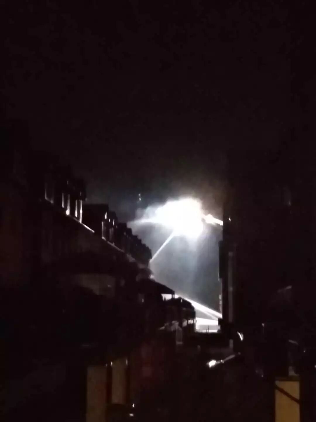 今日凌晨1时,老编于现场目击,大火已被控制,但消防员仍在不断向失火建筑及周边建筑的屋顶大量浇水。消防车,警车均未撤去。红灯闪烁,强光刺眼。
