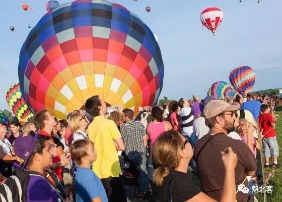 在音乐的伴奏声中,你看那上百只热气球!它们会在人们的“WOW”声中炽烈绽放!看它们接踵离地腾空的那一瞬,看它们被热浪机枪咆哮着喷火,看它们将自己多元的色彩慢慢与加拿大的蓝天融合,看它们一个个膨胀如你的理想,飞离杂沓,直升云端……