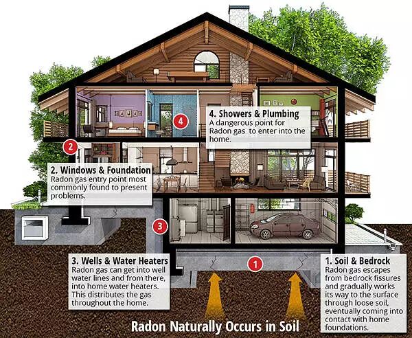 家居中的花岗岩、地下室及车库是氡气的最主要来源。进入冬季后,由于通风不畅,氡气会在房内聚集至危险的浓度。