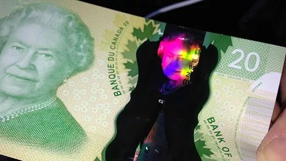 加拿大央行专家表示,验钞最简单的方法就是看女王图像旁的数字和国会山部分,它们会随着钞票的移动和翻转而变色。