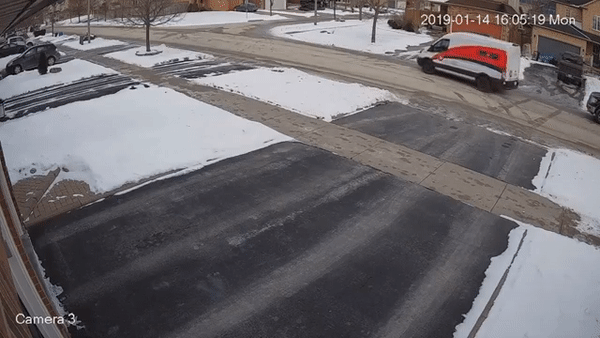 今年1月14日下午4点左右,在安省的Georgina,一辆Canada Post送货车来了。